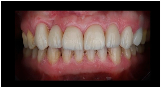The final restoration demonstrated harmonious integration with the adjacent dentition, with appropriate tooth proportions, shade matching, and alignment within the anterior smile zone (Figure 7).