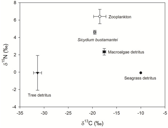- Vander Zanden, J.; Rasmussen, J. Variation in 15N and 13C trophic fractionation: Implications for aquatic food web studies. Limnol. Oceanogr. 2001, 46, 2061–2066. [Google Scholar] [CrossRef]