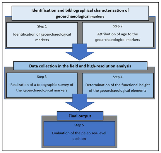 Steps of the proposed methodological analysis procedure to evaluate the paleo sea-level position using geoarchaeological markers.