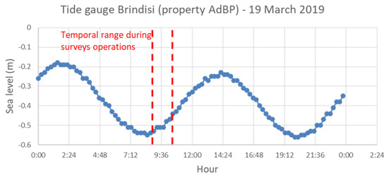 Records from the Brindisi tide gauge (property of AdBP) during the TLS survey on 19 March 2019.