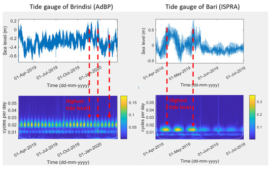 Spectral analysis performed on the tide gauge from Brindisi (property of AdBP) and tide gauge from Bari (property of ISPRA) showed the highest tide level reached in 2019–2020.