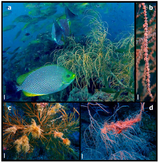 - Hoey, A.S.; Brandl, S.J.; Bellwood, D.R. Diet and cross-shelf distribution of rabbitfishes (f. Siganidae) on the northern Great Barrier Reef: Implications for ecosystem function. Coral Reefs 2013, 32, 973–984. [Google Scholar] [CrossRef]