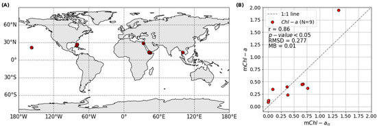 2.4. Satellite-Derived mChl-a Validation