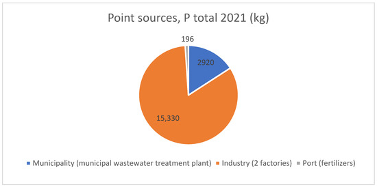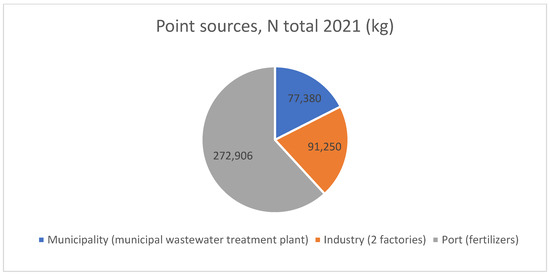 In addition, four significant point sources were identified in the Hamina-Kotka-Pyhtää area: two forest industry factories, municipal wastewater treatment plant, and fertilizer loading berth at port [13,19]. A share of the main point sources of nitrogen and phosphorus in the Hamina-Kotka-Pyhtää area are shown in Figure 2 and Figure 3.