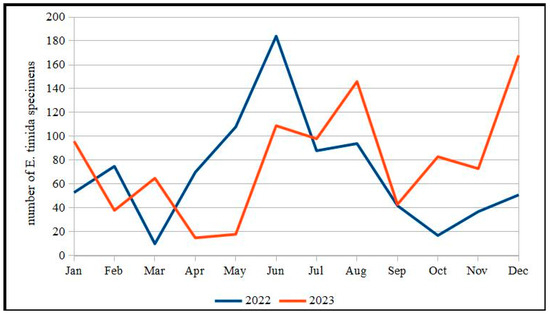 Seasonality: most F. rubrovittata specimens were found in January, February, and April. However, this species was also documented in May, September, and December.