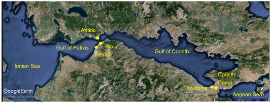 The Gulfs of Patras and Corinth system (Figure 1) lies between the mainland of Greece and the Peloponnese. The Gulf of Patras is a nearly shallow embayment [1] formed on the west of the deeper Gulf of Corinth. The Gulf of Corinth is a restricted, quite long, and deep marine embayment [5]. The Corinth Canal, an artificially dredged channel, links the gulf with the Saronic Gulf and the western Aegean Sea. The southern shores of the gulf are smooth while, on the contrary, the northern shores are sharply dissected.