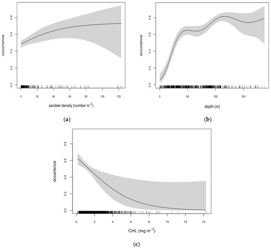The present results endorse the importance of utilising prey data for the interpretation of baleen whale occurrence on their feeding grounds. However, one obvious limitation to the use of BSD data is that these data do not necessarily reflect the sandeel densities in the water column. Although sandeels typically remain within a few kilometres of their burrows [40], the water column versus burrowed densities will be somewhat misaligned at fine spatial scales. With this in mind, the 2 km presence–absence cell size was selected to retain the fine spatial scale aspect of the study whilst providing a wider buffer, in comparison to a 1 km cell size for example, for extrapolation. Additionally, the sighting location buffers likely accounted for much of the wider area over which sighted whales were potentially foraging, and subsequently the wider area occupied by sandeels in the water column around their suitable burrowing habitat. For instance, a whale that was foraging for sandeels that was sighted within a low sandeel density grid cell adjacent to a high sandeel density grid cell would not necessarily be associated with low sandeel density in the model, as the buffered sighting locations result in adjacent cells containing higher values being considered as ‘presence’ cells. Thus, the results of this study indicate that BSD provides a convenient proxy for water column sandeel availability, supporting modelled prey data as a useful alternative to in situ prey data. However, given that the BSD main effect alone was a far less powerful predictor of whale presence than the tensor product interaction for BSD with month in the present study, the importance of incorporating a temporal component in such analyses may be essential to elucidate any seasonal trends.