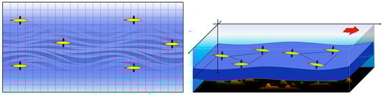 Kuroshio current observation scheme with UG fleet (red arrow indicate the flow direction) [].