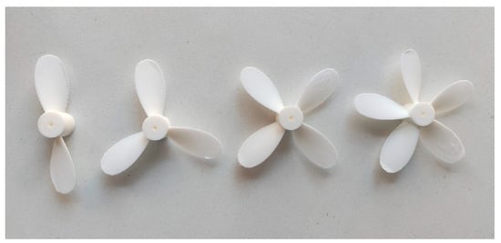 By comparing the results with those in Section 4.2, it can be concluded that the noise of the three-blade propeller is the lowest under the optimal speed threshold of different blades, and the difference between the five-blade propeller and the three-blade propeller is not significant.
