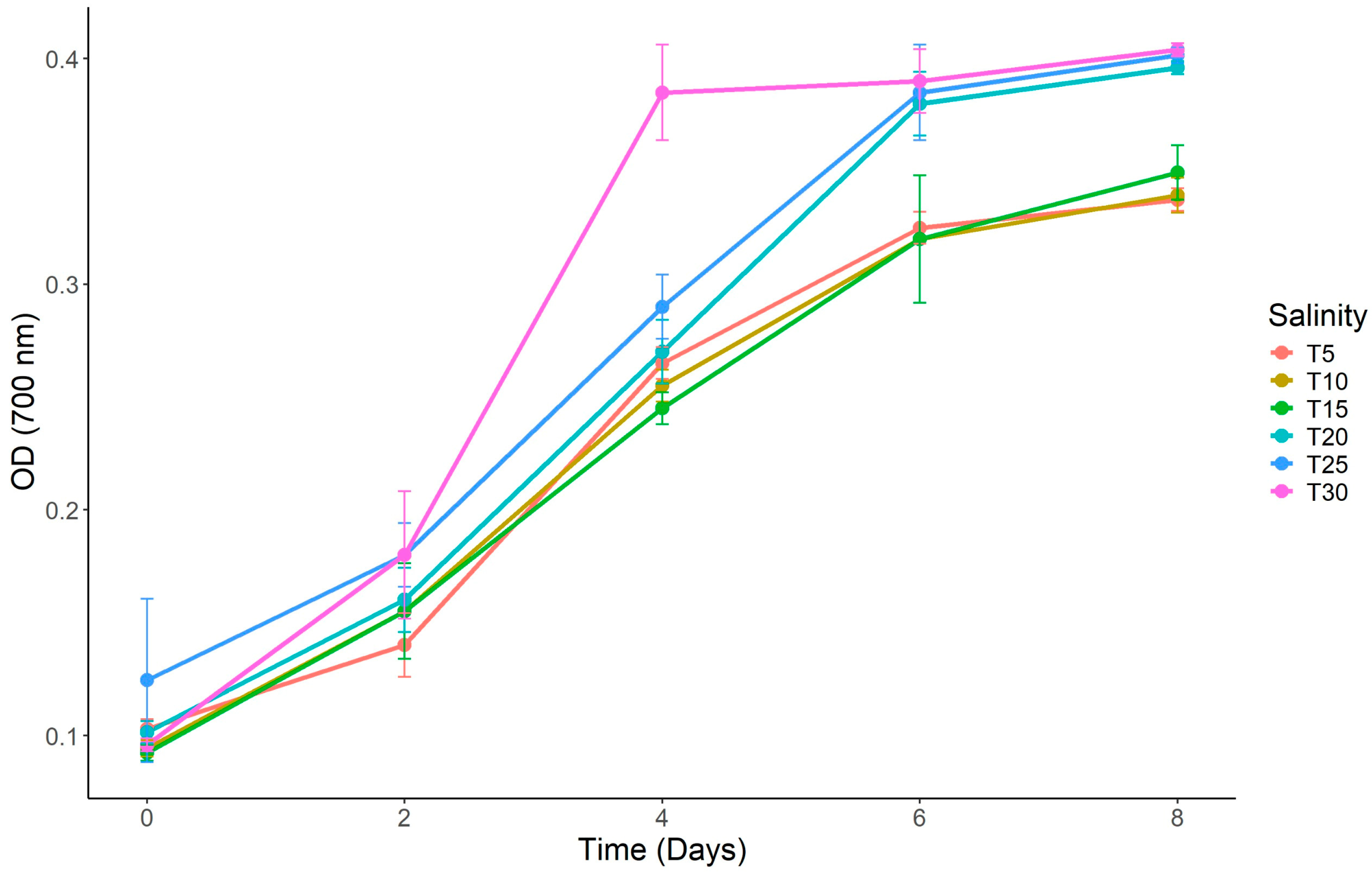 | This study | Chaetoceros muelleri | 28–52% | 1.35–3.47 | Synthetic saline media, 6 salinity levels (T5–T30), 8-day culture |