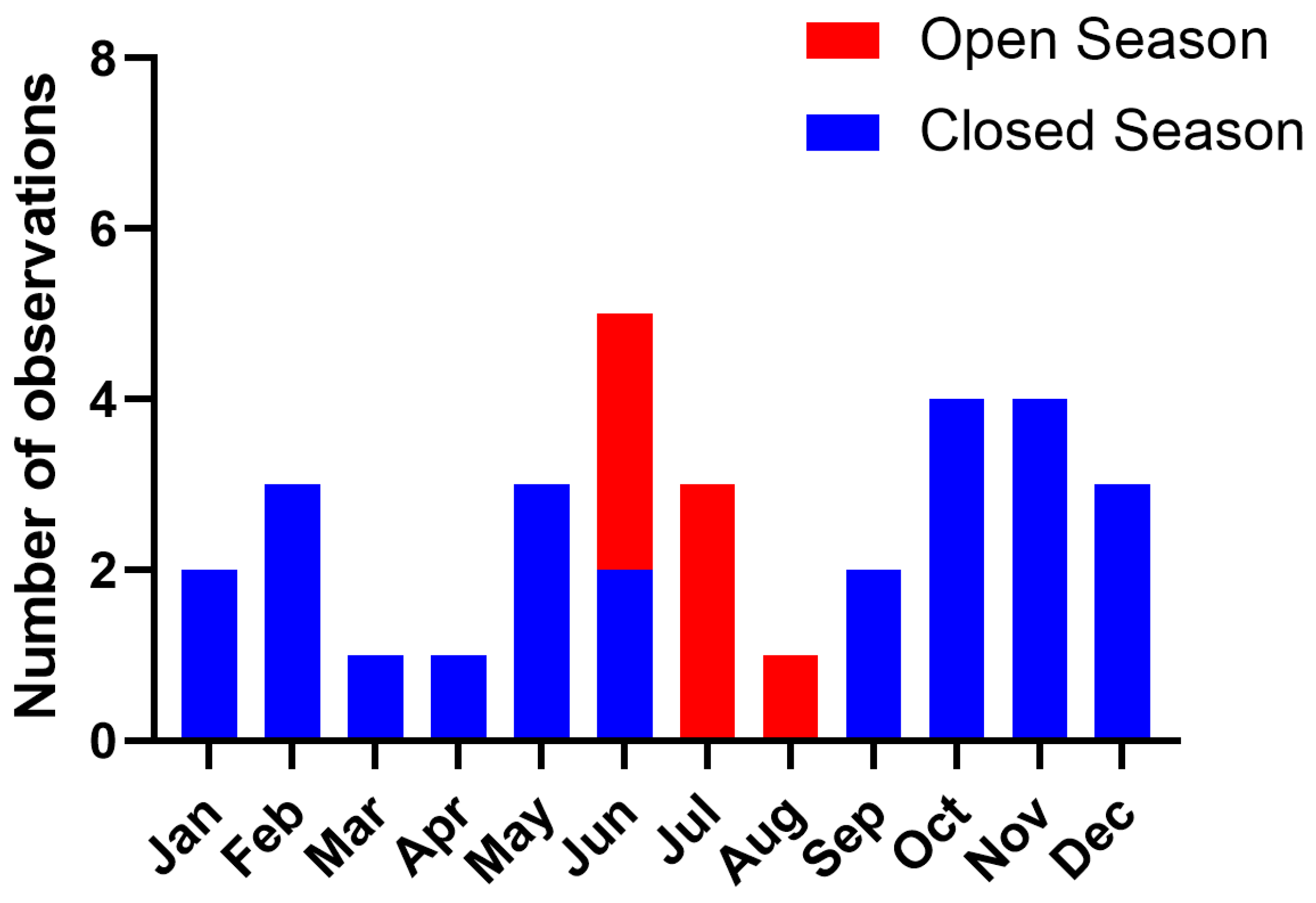 - Taylor, L.U.; Barychka, T.; McKeon, S.; Bartolotta, N.; Avery-Gomm, S. Strengths and Limitations of Using Participatory Science Data to Characterize a Wildlife Mass Mortality Event. Ecosphere 2024, 15, e70051. [Google Scholar] [CrossRef]