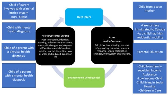- Padalko, A.A.; Gawaziuk, J.; Logsetty, S.; Chateau, D.; Sareen, J.; Logsetty, S. Social Determinants Associated with Paediatric Burn Injury: A Population Based, Case-Control Study. J. Burn Care Res. 2020, 41, S210–S211. [Google Scholar] [CrossRef]