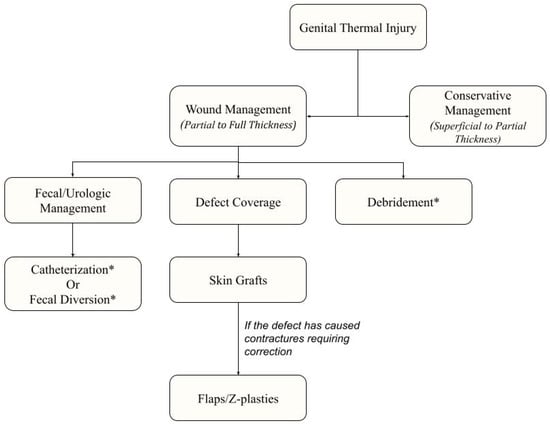 - Michielsen, D.P.J.; Lafaire, C. Management of genital burns: A review. Int. J. Urol. 2010, 17, 755–758. [Google Scholar] [CrossRef]