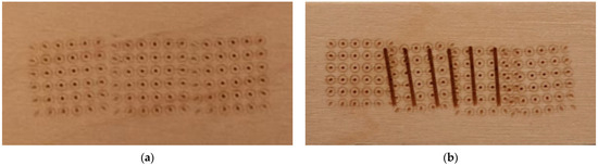 Carbon dioxide laser therapy techniques demonstrated on a tongue depressor. (a) Fractional technique; and (b) surgical cuts technique.