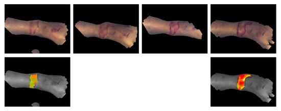 Figure 8 shows an example of a burn wound on the left foot, caused by scald from day 0 to day 3. A preliminary classification has been performed based on the actually available amount of data. The classification on day 3 conforms with clinical reference classification. The classification on day 0 is a little bit less deep, but, as mentioned, with a high uncertainty.