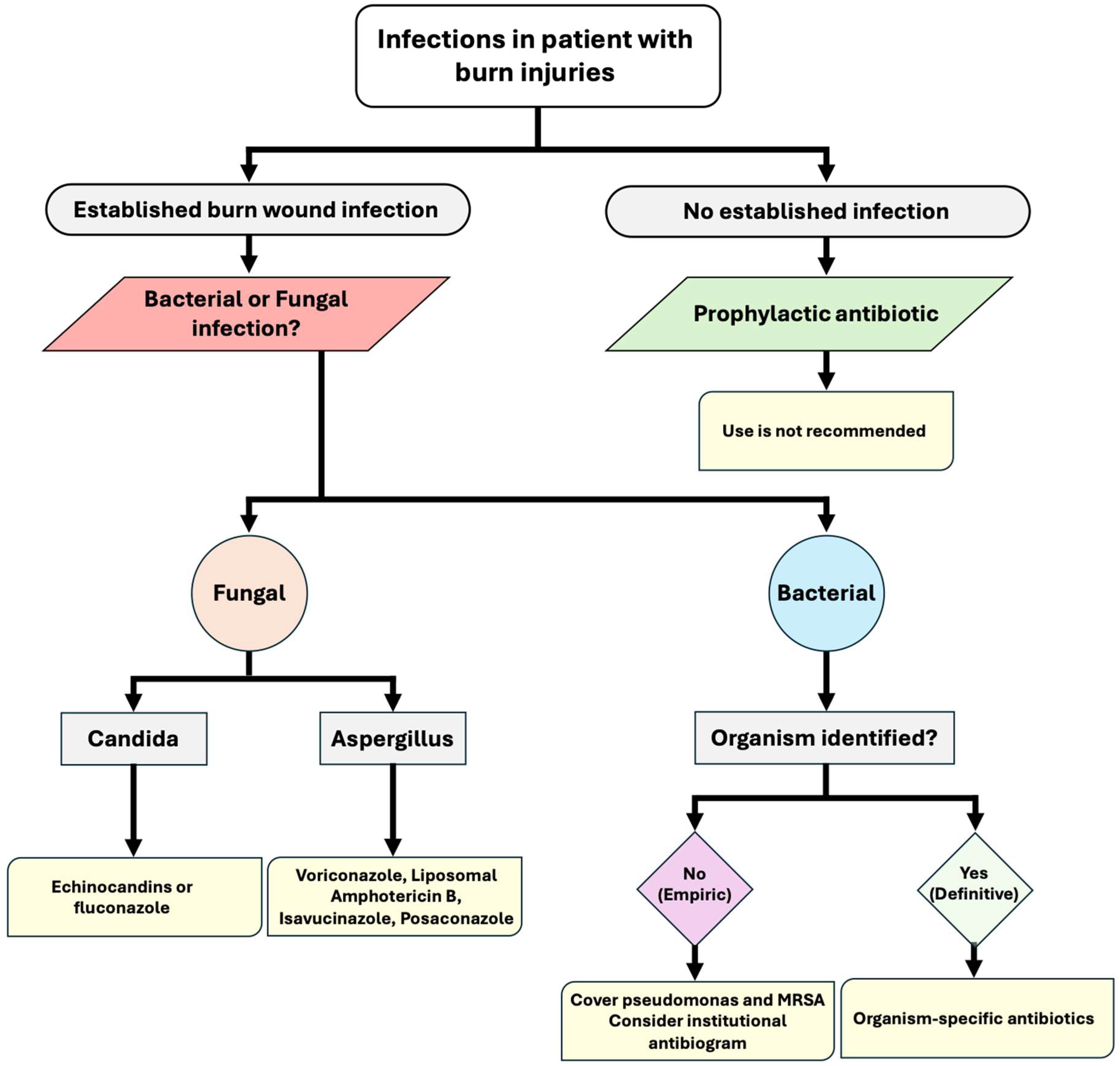 Chicago/Turabian StyleAlharthi, Abdullah F., Khalid Al Sulaiman, Sultan Alotaibi, Rahaf Alqahtani, Nader Damfu, Aisha Alharbi, Sufyan Alomair, Haifa A. Alhaidal, and Ohoud Aljuhani. 2025. "Managing Infections in Burn Patients: Strategies and Considerations for Antimicrobial Dosing" European Burn Journal 6, no. 4: 53. https://doi.org/10.3390/ebj6040053