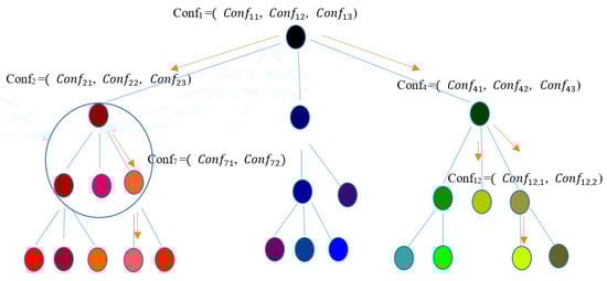 where are defined as the mean and standard deviation of the Confi vector. The parameter determines the branching behavior. The very high value of it made the algorithm choose only a single path, and lower values resulted in selecting multiple paths. In experimental results, we have shown the optimum value for alpha. The result of the image classification method was several paths from the root to the leaves (Figure 3) with different confidence values, which were used as summarization features.