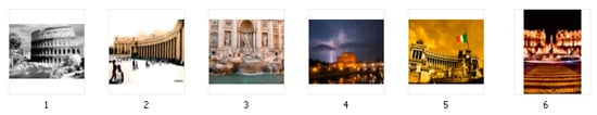 Figure 11 illustrates a set of original images for Rome, which was given as input to our image summarization method, and Figure 12 shows the result of summarization. As seen, the original set contained redundant and irrelevant images, and the summarization system found representative images. After evaluating the proposed method for image collection summarization, we evaluated the classifier module and ontology features separately in the following sub-section.