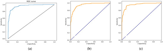 AUROC curves of the developed models. (a) VGG16; (b) CNN with Self-learning; (c) Autoencoder-Classifier.