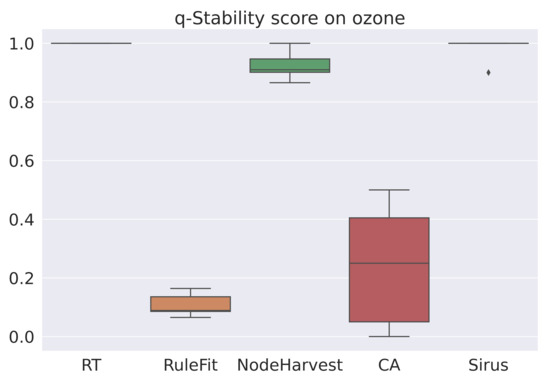 Box-plot of the q-stability scores for each algorithm for the dataset Ozone.
