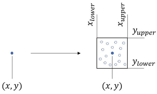 One of these tools, abstract interpretation [], helps in dealing with such uncertainties, by enveloping them in abstract objects. This idea has also recently found its way to the neural network community for verification [,,], but also for training [,]. Abstracting single data-points with sets of points, e.g., by encompassing them in a hypercube, as illustrated in Figure 1, it becomes possible to work with the complete neighbourhood of such data-points, without having to sample all points that lie around it.