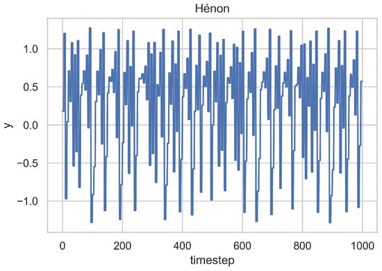 The Hénon time-series is based on the Hénon map introduced in 1976 []. Equation (11) was used to compute the time-series.