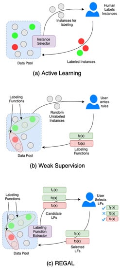 - Boecking, B.; Neiswanger, W.; Xing, E.; Dubrawski, A. Interactive Weak Supervision: Learning Useful Heuristics for Data Labeling. In Proceedings of the International Conference on Learning Representations, Vienna, Austria, 4–8 May 2021. [Google Scholar]