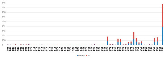 Figure 5 indicates the average and standard deviation of the feature scores assigned by an ensemble of Wrapper methods, including SVM and LR.
