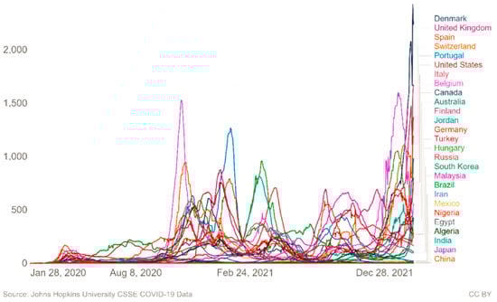 This way Figure 2 demonstrates daily confirmed COVID-19 cases per million people in these counties based on a 7-day rolling average. However, because of some restrictions in testing, the number of confirmed cases is lower than the true number of infections. According to this figure the world is seriously has seen problems with COVID-19. This is why the organization of this research could shed light on the uncertainties in the application of AI for forecasting COVID-19 spreading around the globe.