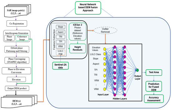Workflow of the Neural Network-based Fusion Framework for DEM Improvement.