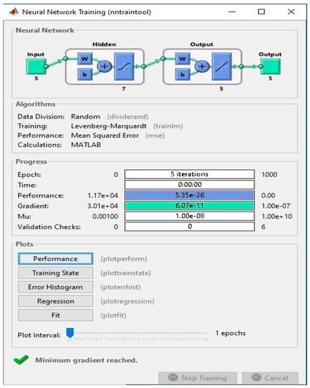 The cross-validation technique, which is an evaluation of a predictive model’s accuracy, was then used to divide the obtained data into subsets. It is calculated by dividing the total number of correctly classified cases in the dataset by the total number of instances. Partitioning a sample of data into subsets, analysis on one subset (referred to as the training set), and testing the analysis on the other subset constitutes one round of cross-validation (called the testing set). The ANN experiences overfitting. To prevent overfitting, a third subset known as the validation set is used. Additionally, several cross-validation rounds are carried out using various divisions to reduce variability and prevent bad splits that could lead to overfitting, and the tested results are averaged over the rounds.