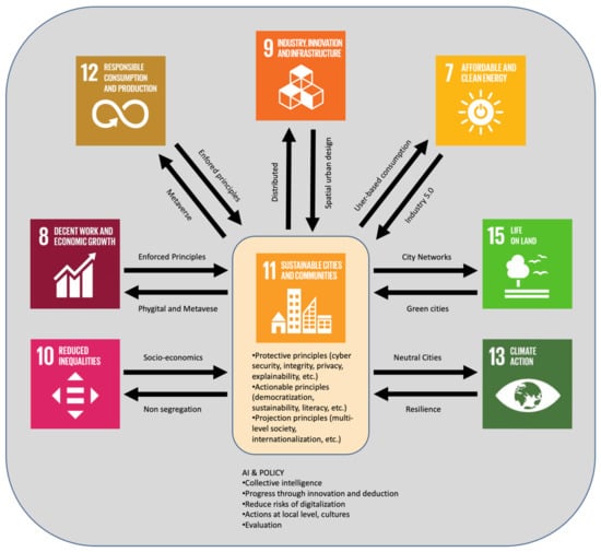 - Vinuesa, R.; Azizpour, H.; Leite, I.; Balaam, M.; Dignum, V.; Domisch, S.; Felländer, A.; Langhans, S.D.; Tegmark, M.; Nerini, F.F. The role of artificial intelligence in achieving the Sustainable Development Goals. Nat. Commun. 2020, 11, 233. [Google Scholar] [CrossRef] [PubMed]