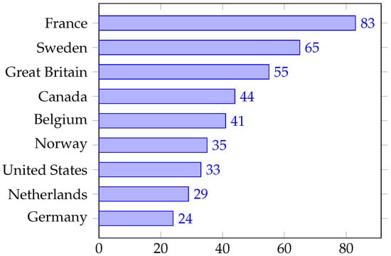 Despite the provisions of the Equality Act, questions persist about the enduring presence of hiring procedures that disproportionately affect minority groups in developed nations, although efforts were initiated during the civil rights era to eliminate such biases []. Since the hiring practices in the 1960s were tailored to white middle-class men, new instruments were required to create equal access to opportunities for women and people of color. Sadly, this objective remains unrealized despite the advances in scientific research on human aptitudes []. Sociologist Lincoln Quillian and his colleagues conducted a comprehensive examination of hiring practices across nine European and North American countries. Using a formal meta-analysis of 97 field experiments of discrimination incorporating more than 200,000 job applications, Quillian and collaborators established the existence of pervasive hiring discrimination against all non-whites []. The meta-analysis, inclusive of published and unpublished studies, employed field experimental methodologies until 2016 and measured the level of discrimination by calculating the percentage of interview callbacks native whites received compared to non-whites. Callbacks are a request to a candidate to return for an interview or provide more information, demonstrating interest from the potential employer. The results indicated that Germany had the lowest level of hiring discrimination at 24 percent callback rates for white natives, while France exhibited the highest discrimination against non-whites at 83 percent callback rates []. Figure 1 below illustrates the percentage of additional callbacks a native white individual received in comparison to a non-white counterpart across the nine countries.