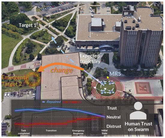 - Liu, R.; Cai, Z.; Lewis, M.; Lyons, J.; Sycara, K. Trust Repair in Human-Swarm Teams+. In Proceedings of the 2019 28th IEEE International Conference on Robot and Human Interactive Communication (RO-MAN), New Delhi, India, 14–18 October 2019; IEEE: Piscataway, NJ, USA, 2019. [Google Scholar]