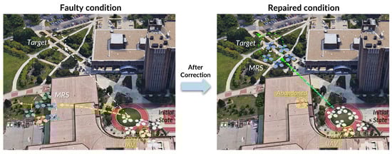 - Zhang, F.; Chen, W. Self-healing for mobile robot networks with motion synchronization. In Proceedings of the 2007 IEEE/RSJ International Conference on Intelligent Robots and Systems, San Diego, CA, USA, 29 October–2 November 2007; IEEE: Piscataway, NJ, USA, 2007. [Google Scholar]