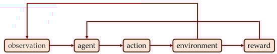 The reinforcement learning process involves several steps as shown in Figure 1. An agent interacts with its environment in this iterative cycle by receiving observations that represent the system’s current state. Equipped with a policy, the agent subsequently decides on an action by these observations. By applying the selected action to the environment, a reward signal is generated and the environment undergoes a transition to a new state. Both the reward and the amended observation are received by the agent; these are essential for the agent to learn and refine its policy. As the agent seeks to maximize cumulative rewards over time this cyclical interaction persists, and it eventually teaches the agent the optimal strategy for navigating and making decisions in the given environment.