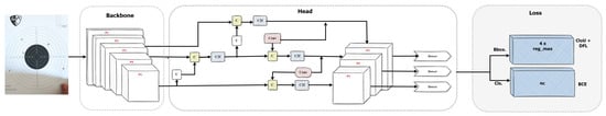 YOLOv8 makes use of a decoupled head. This means that the classification and the object detection are treated separately. The activation function for object detection is sigmoid, representing the probability of a bounding box containing an object. The softmax function is used for the classification probability of each class. In Figure 4, the three outputs in the head region are for objectness, classification, and regression. The head of YOLOv8 is anchor-free, eliminating the need for anchor boxes and thus making the model easy to train on different datasets. YOLOv8 is also the first version to introduce soft NMS instead of NMS. This means overlapping bounding boxes are not entirely removed; the target information is preserved, eventually reducing cases like FP and FN [].