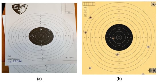Liu and Chen [] used different image processing techniques like image binarization, segmentation, morphological processing, Hough transforms, and the bullet difference method to calculate the position of the bull’s eye and bullet holes. They managed to achieve a precision of 98.5% for the calculation of the firing score. Similarly, in another study for the recognition of bullet holes based on video image analysis, Roulin et al. [] designed two approaches to compare the performances; the first approach is based on rough positioning, support vector machine (SVM), the histograms of oriented gradient (HOG) algorithm, and convolutional neural networks (CNNs) for the extraction and recognition of bullet holes. The second approach constitutes rough positioning followed by a deep CNN. They used classical image processing techniques like frame extraction, the Otsu method, morphological filtering, and the region labeling process for rough positioning. Their experiments show that the SVM-based approach performed better, with a precision value of 98.57%.
