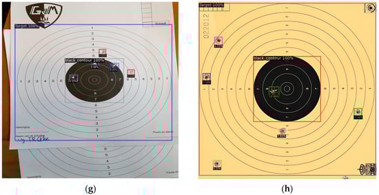 Target or aim detection is a significant part of image processing and recognition []. Manual and automatic target scoring are the two main methods used for score calculation. Manual observation is still used for target scoring calculation in major shooting competitions. While automatic score calculation is time-efficient and less erroneous, it depends on how accurately bullet holes and the center of the target are detected []. Small objects have mostly low-resolution and noisy representations, making their detection (multiple occurrences) challenging []. The problem of detecting bullet holes with labels is an object detection task. The related work can be grouped into two primary object detection fields. The first field comprises the classical image-processing methods based on several steps starting with binarization, contour detection, and feature extraction techniques like Otsu threshold, scale-invariant feature transform (SIFT), and histograms of oriented gradient (HOG). With the developments of deep learning and convolutional neural networks (CNNs), a new field has been established in object detection which has outperformed the conventional methods by extracting more complex and advanced features.
