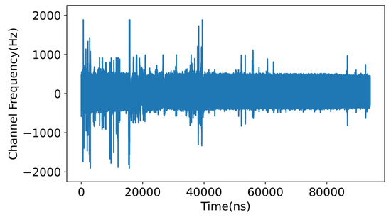 Figure 5 shows the channel frequency by varying the time before the applying wavelet transform. The channel frequency ranges from −2000 to 2000 in the time range of 0.1 to 80,000 ns. From these channel frequencies, it is difficult to obtain the important parameters of the signal. Hence the wavelet transform has been applied to extract the signal parameters.