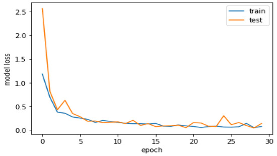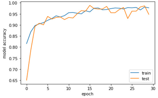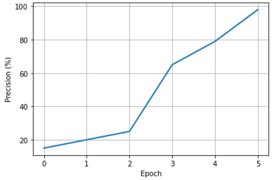 Figure 8 shows the accuracy of the proposed system with varying numbers of epochs. The accuracy attains a minimum value of 0.65 at the initial stage and attains a maximum value of 0.98 at 27 epochs. Thus, it was noticed that the accuracy increased with the increase in epochs. The accuracy of the proposed system was increased using deep CNN-based signal processing, which extracted all the features associated with anxiety from the brainwaves in the EEG signals.