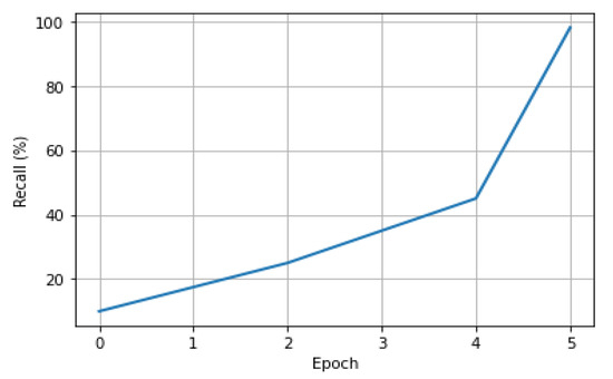 Figure 18 shows the recall of the proposed system with varying data counts. The recall has a minimum value of 93.1% at 1000 data counts and a maximum value of 95.0% at 6000 data counts. The recall of the proposed system is increased via the optimized wavelet transform of the EEG signal, which removes artifacts using the flower pollination algorithm for choosing the best wavelet parameters to then choose the optimal parameter.