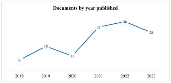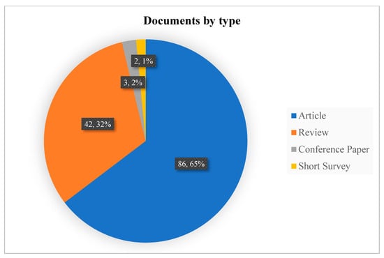 The search was carried out on 31 October 2023 at 1:47 pm. The search query yielded 147 results. After selecting only articles, reviews, conference papers and short surveys written in English, the number of papers dropped to 133. Their distributions with regard to the year of publication, subject area and document type are depicted in Figure 1, Figure 2 and Figure 3, respectively.