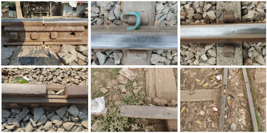 We have collected our dataset by visiting railway tracks in different locations across Bangladesh [40]. Since the railway tracks were constructed many years earlier, only faults for meter gauge and broad gauge lines were found. We went to the railway tracks at Jessore and Feni and took photographs from different places in the city for several days. We went to stations and junctions collecting data from old, new, and abandoned rail tracks. We have also considered abandoned tracks because we can not find all kinds of faults in regular tracks. We have mainly found faults in rails and fasteners, which are one of the major components of railway tracks and are usually responsible for causing drastic accidents. To make a statistically significant dataset, we could only use faults of sleepers and fasteners images for training our model. We have collected 428 images in total, containing 156 defective and 272 non-defective images. We tried to take images from different angles for each type of error. Some of the sample images of our initial dataset are shown in Figure 2
