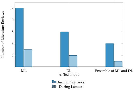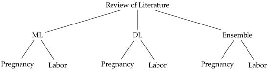 Several studies have been conducted addressing the use of ML- and DL-based techniques for fetal hypoxia detection. This section presents the existing literature by summarizing previous studies. Figure 2 shows how the summaries are organized based on the techniques used, either ML, DL or ensemble, which are divided into two subsections: during pregnancy and during delivery.