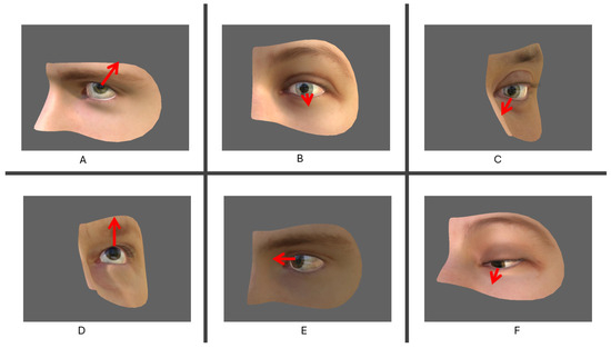 Eyes Directions. (A,D) Upper direction, (B) Straight direction, (E) Side direction, (C,F) Down direction.
