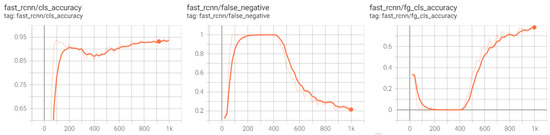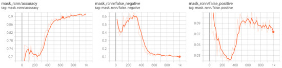 The decrease in false negatives over time and the increase in correctly classified foreground objects indicate improved performance. Nonetheless, as the model’s performance is visually shown, there is still potential for improvement. In the Mask R-CNN model (Figure 11), accuracy and false negatives demonstrate positive outcomes, but fluctuations in false positives indicate areas for improvement, especially in cases where legs or other objects are occasionally misidentified as hands due to similar lengths.