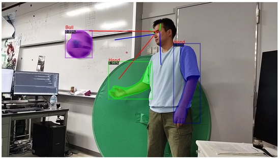 The important components of handball event recognition are hand and ball recognition. Accurate detection of the hand and ball is, therefore, vital. To determine hand and ball objects, we trained our system using Detectron2, a modular object detection library [15]. Detectron2 stands out as a versatile and powerful framework for object detection and segmentation tasks, offering a rich array of pre-trained models, efficient training pipelines, and robust inference capabilities. Its modular architecture facilitates easy customization and extension, allowing us to tailor models to specific domains and applications. We use instance segmentation [16] because there should be no gaps between bounding boxes and the objects. Simply put, when these two objects, the ball, and the hand bounding boxes, overlap, there is a high probability of a handball event, using Detectron2, an open-source library’s straightforward and user-friendly API, enabled us to create and train our models. First, we import the necessary libraries and modules from Detectron2 and construct the configuration file for the instance segmentation model. The configuration file contains information about the model’s architecture, training hyperparameters, and other configurations. As a training baseline, the previously trained model was used. Additionally, the number of classes was specified. Both the training and testing datasets were stored in the COCO [17] format, a popular format for object detection and instance segmentation tasks. To determine the accuracy of the training results for object detection, Fast R-CNN [18] and Mask R-CNN [19] were used. Fast R-CNN integrates a region proposal network with a deep convolutional neural network, allowing for end-to-end object detection. It proposes areas of interest and performs categorization and bounding box regression on these regions simultaneously, resulting in faster inference compared to previous methods. Additionally, it employs a multiple-task loss function to collaboratively optimize classification and bounding box regression tasks. By including a branch for segmentation mask prediction alongside the current classification and bounding box regression branches, Mask R-CNN expands Fast R-CNN. This enables instance segmentation, allowing the model to distinguish between different object instances in an image. By incorporating a mask branch, state-of-the-art performance in instance segmentation tasks are achieved with Mask R-CNN.