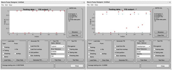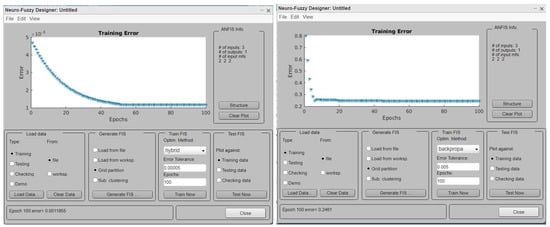 The training of the ANFIS model was performed using a hybrid method: a combination of the steepest descent algorithm and least square method using backpropagation as shown in Figure 7. The convergence of the error is easily achieved in hybrid models. In Figure 7, it is clearly shown that the error convergence is smooth in hybrid mode but backpropagation is abrupt in nature.