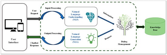 The key to a chatbot’s functionality lies in its ability to process and analyze language. Rule-based chatbots rely on a database of responses and pick one based on the closest matching command from the user. In contrast, AI-powered chatbots use NLP to parse and understand the user’s language, intent, and sentiment, enabling them to provide more relevant and personalized responses [23,24]. Chatbots are typically used in customer service to provide quick and automated responses to common inquiries and ease the workload of human staff [25]. They are also employed in various other domains, such as e-commerce for personalized shopping assistance, in healthcare for preliminary diagnosis and appointment scheduling, and in entertainment as interactive characters.